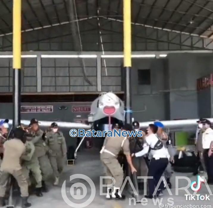 Dalam unggahan video itu, terlihat banyak anggota Satpol PP yang datang ke hanggar. Mereka kemudian mengangkut pesawat ke luar hanggar.