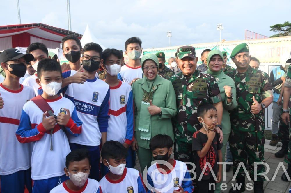 JAKARTA _: Momen menarik terjadi saat Kasad Jenderal TNI Dr. Dudung Abdurachman, S.E., M.M., menyapa dan menyempatkan diri berswafoto bersama anak-anak sekolah saat hendak meninjau Lapangan Sepak Bola Jenderal Besar Soedirman di Cilacap, Jawa Tengah, Selasa (21/6/2022).