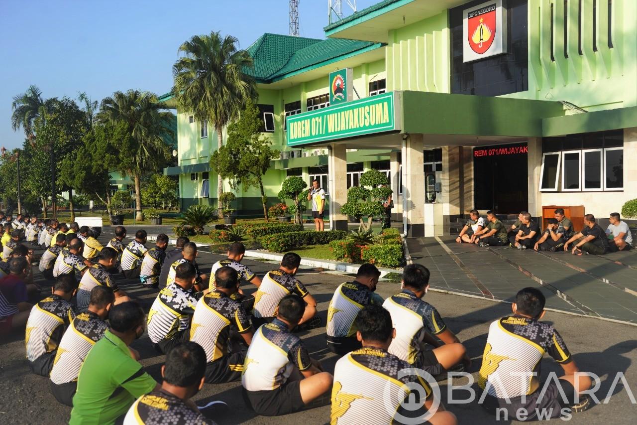 Olahraga bareng Danrem 071/Wijayakusuma ini, dengan melakukan olahraga hanmars jalan mengelilingi lingkungan Ksatrian sejauh 3,2 Km. Selain bertujuan untuk menjaga kesehatan, juga sebagai wahana mempererat dan memperkokoh kebersamaan serta soliditas satuan.