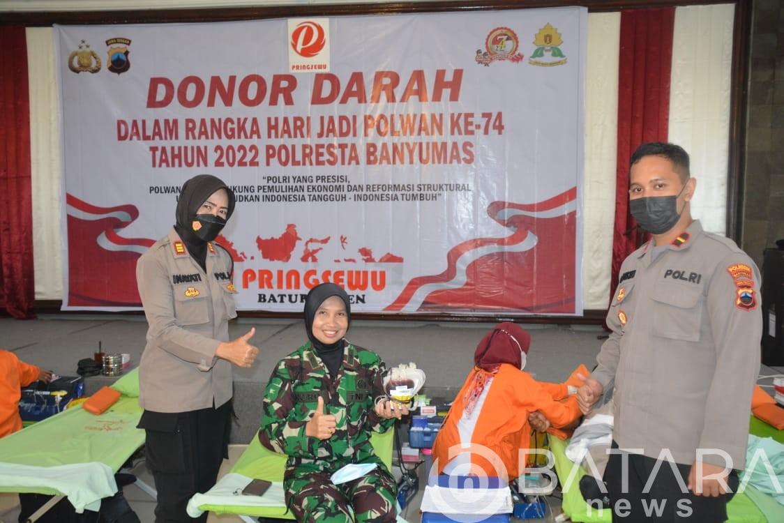 Sinergi Kowad dan PNS Putri Korem 071/Wijayakusuma Donorkan Darah HUT Polwan Ke-74 Polresta Banyumas