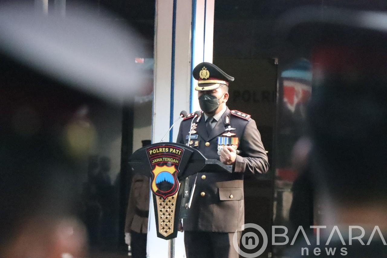 Upacara yang digelar di halaman Mapolres Pati ini dimulai pukul 07.00 WIB diikuti oleh pejabat utama Polres Pati dan anggota yang berlangsung dengan penuh khidmat.