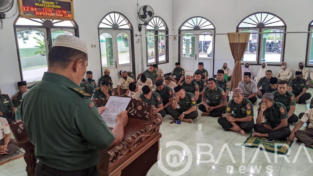 Banyumas – Danrem 071/Wijayakusuma Kolonel Inf Yudha Airlangga, S.E., menghimbau untuk seluruh prajurit dan PNS Korem 071/Wijayakusuma meneladani akhlak mulia Nabi Muhammad SAW. Hal tersebut, diutarakannya saat Keluarga Besar Makorem 071/Wijayakusuma memperingati Maulid Nabi Muhammad SAW, Rabu (12/10/2022) yang berlangsung di Masjid Wijayakusuma, Makorem 071/Wijayakusuma, Sokaraja, Banyumas.