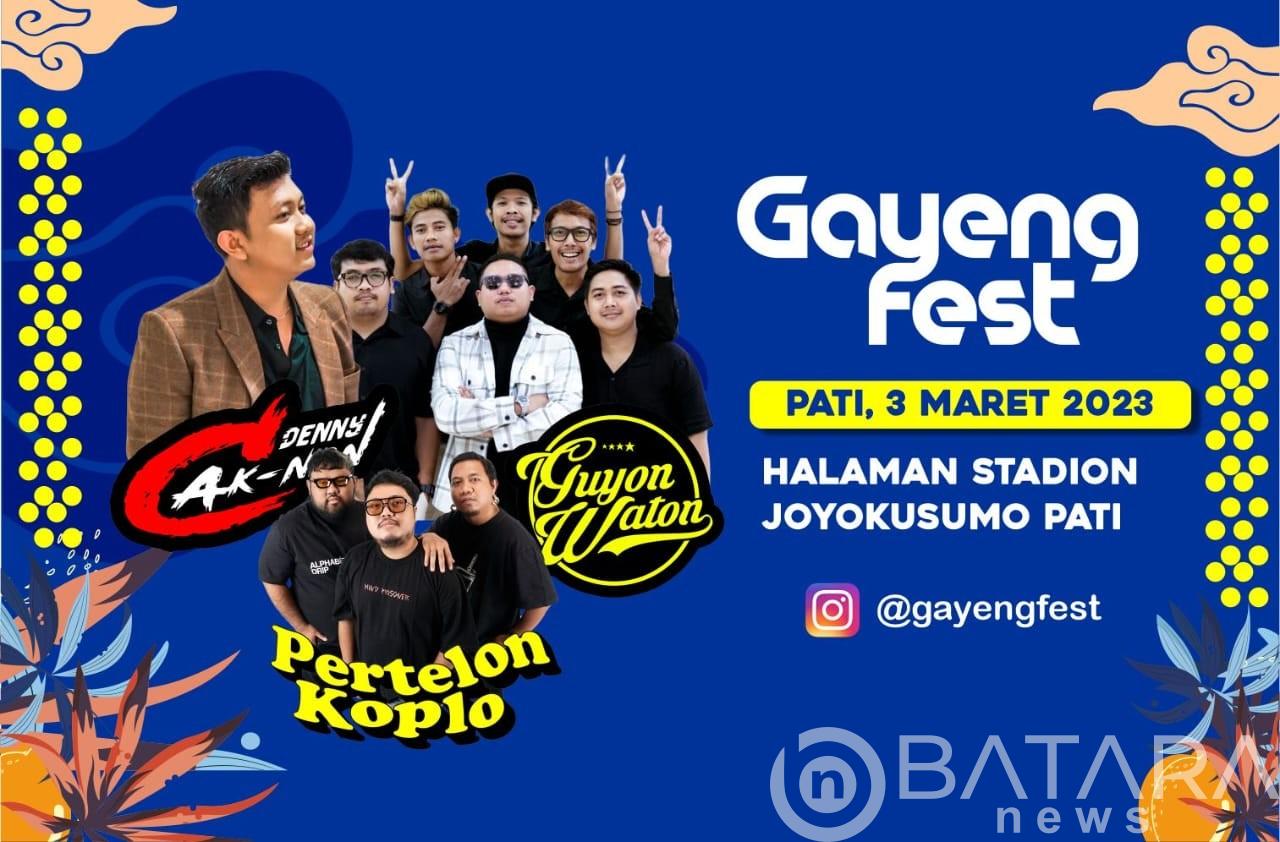 Dibawah Bagong Production, “Gayeng Fest 2023” rencananya akan digelar di Halaman Stadion Joyokusumo Pati pada 3 Maret 2023 mendatang.