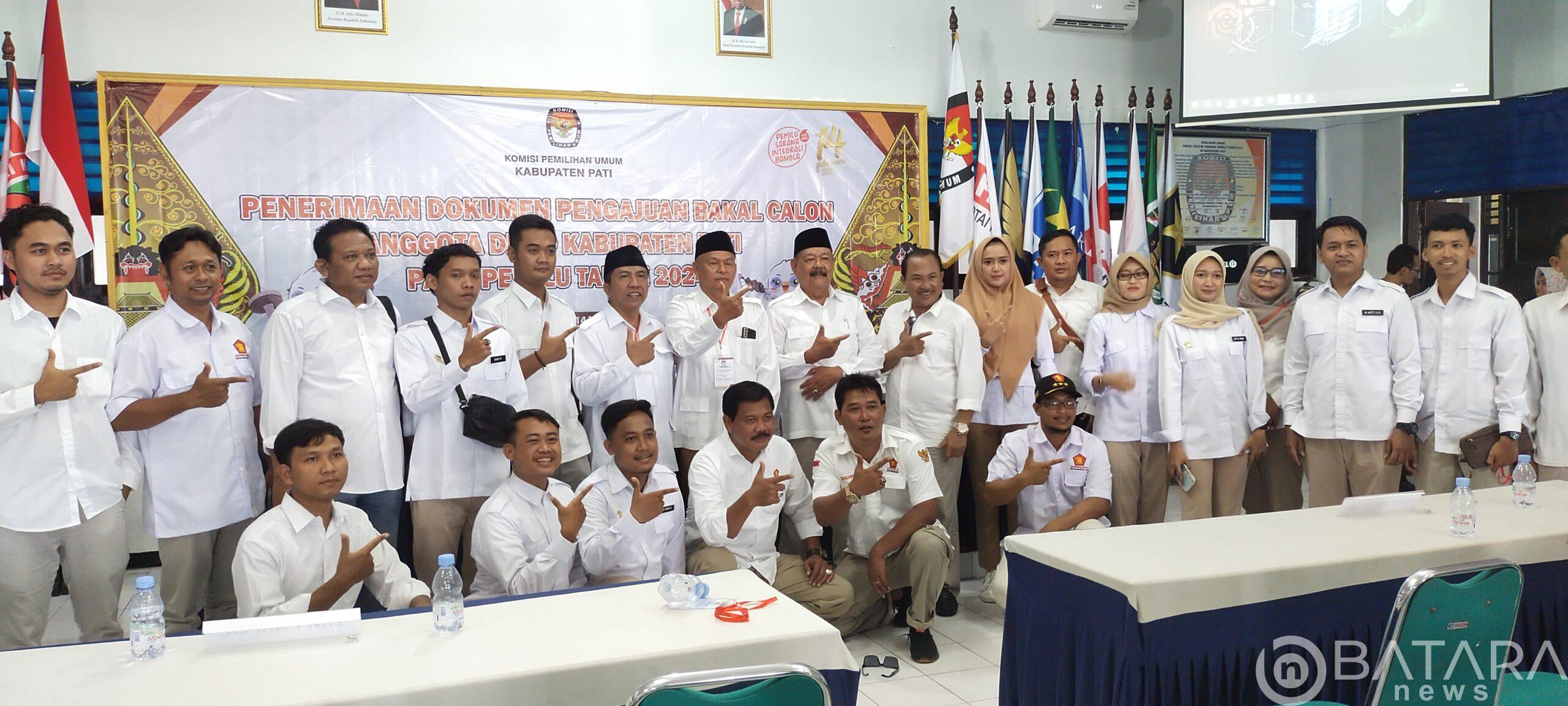 Penyerahan Dokumen pendaftaran Bacaleg Partai Gerindra ke Komisi Pemilihan Umum (KPU) Kabupaten Pati, tanpa ada kendala dan sesuai dengan persyaratan yang ditetapkan.