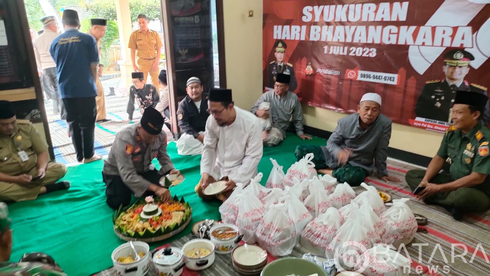 Syukuran diawali dengan pembacaan tahlil yang dilanjutkan penyampaian pencerahan oleh tokoh agama beserta doanya, lalu dilanjutkan dengan prosesi pemotongan tumpeng yang dilakukan oleh Kapolsek sendiri.