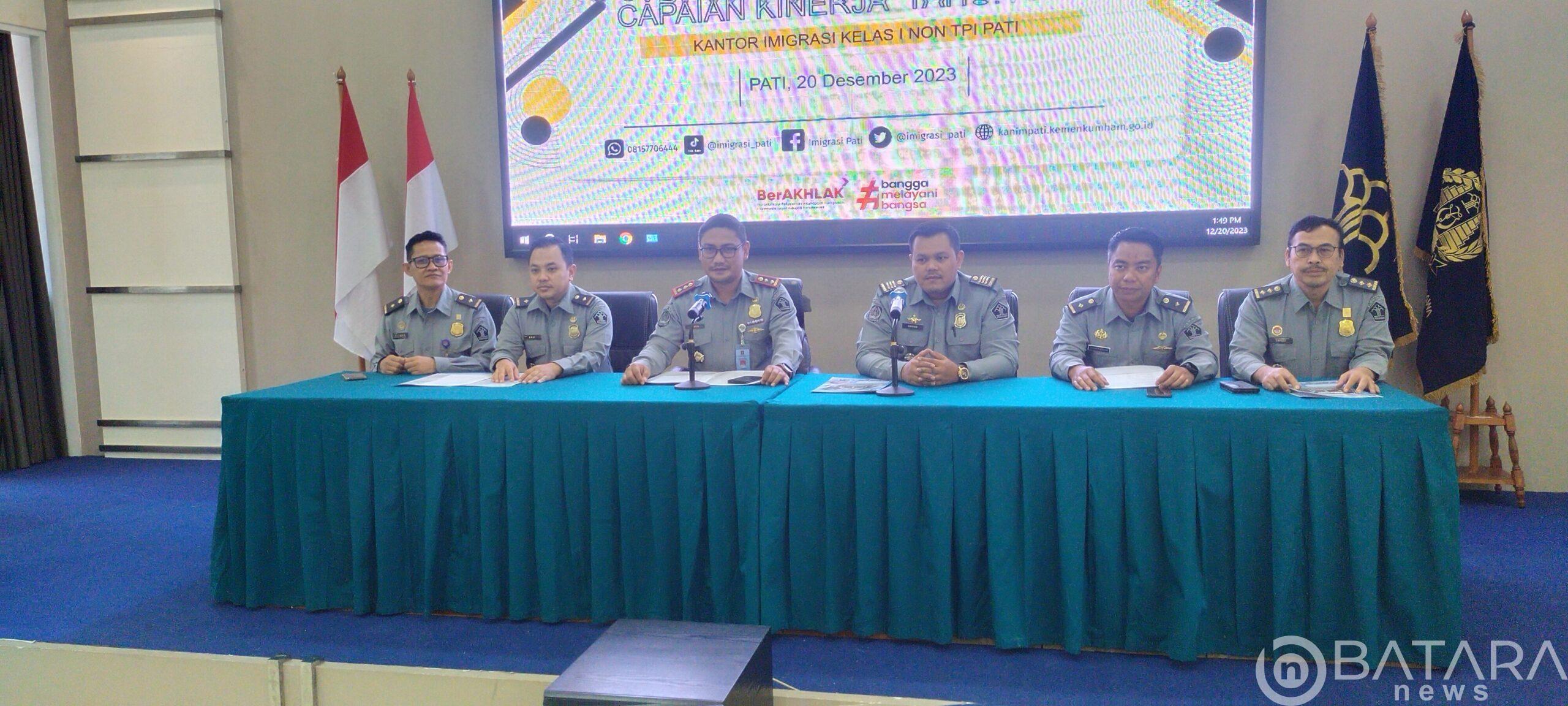Pati, Batara.news | Kantor Imigrasi Kelas I Non TPI Pati menggelar press release capaian kinerja tahun 2023 di aula Kantor Imigrasi, Rabu 20 Desember 2023. Dalam pemaparannya, kepala kantor Erwin Hariyadi menyampaikan beberapa capaian dalam kurun waktu satu tahun ini.