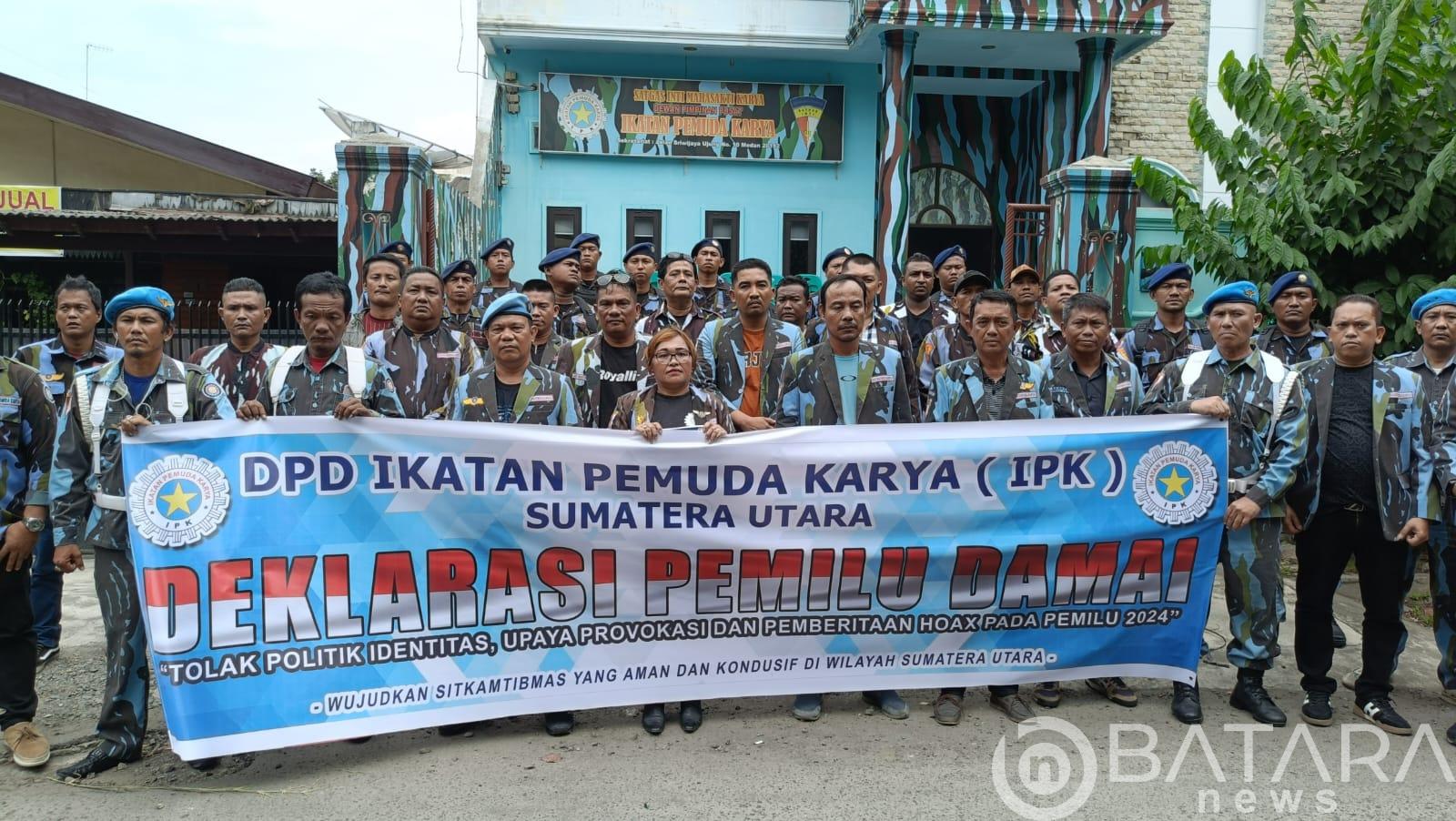 *Sumatera Utara, Batara.news|| Satuan Tugas Dewan Pimpinan Daerah Ikatan Pemuda Karya Sumatera Utara (Satgas DPD IPK Sumut) menggelar deklarasi Pemilihan Umum (Pemilu) damai tahun 2024.
