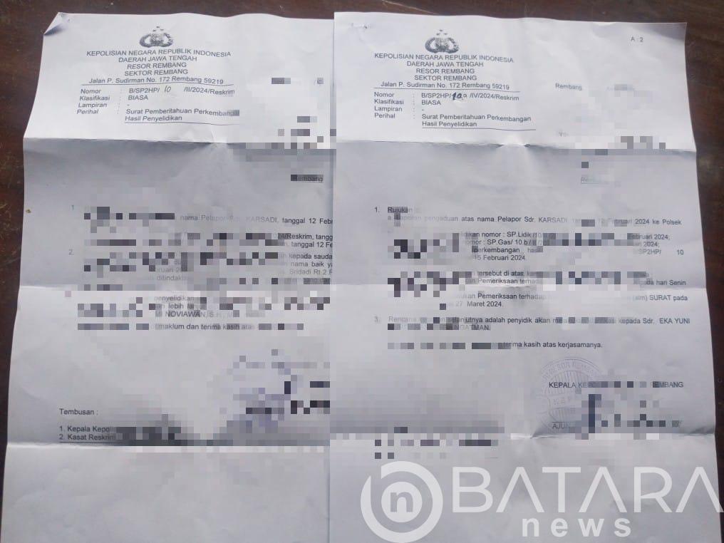 Rembang, Batara.News-Masih dalam pengembangan kasus dugaan pencemaran nama baik saudara Karsadi (giling) desa Sridadi, kecamatan Rembang, kabupaten Rembang, yang mana terduga adalah saudari (ey) saudara (ml) dan saudara (Ng).
