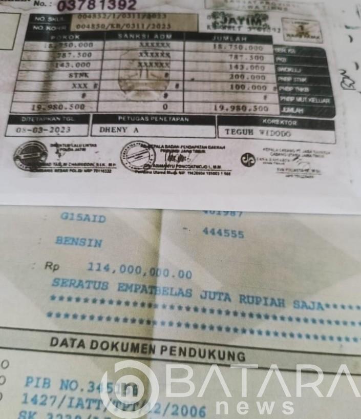 -Pajak STNKB sebesar Rp 19.980.500.,
