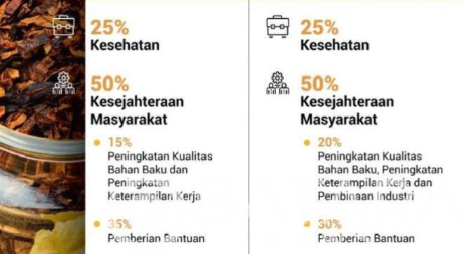 Adapun beberapa contoh pemanfaatan alokasi sumber dana dari cukai dikelola Dinsos dikembalikan menjadi alokasi BLT (Bantuan Langsung Tunai) juga untuk pembayaran BPJS masyarakat,