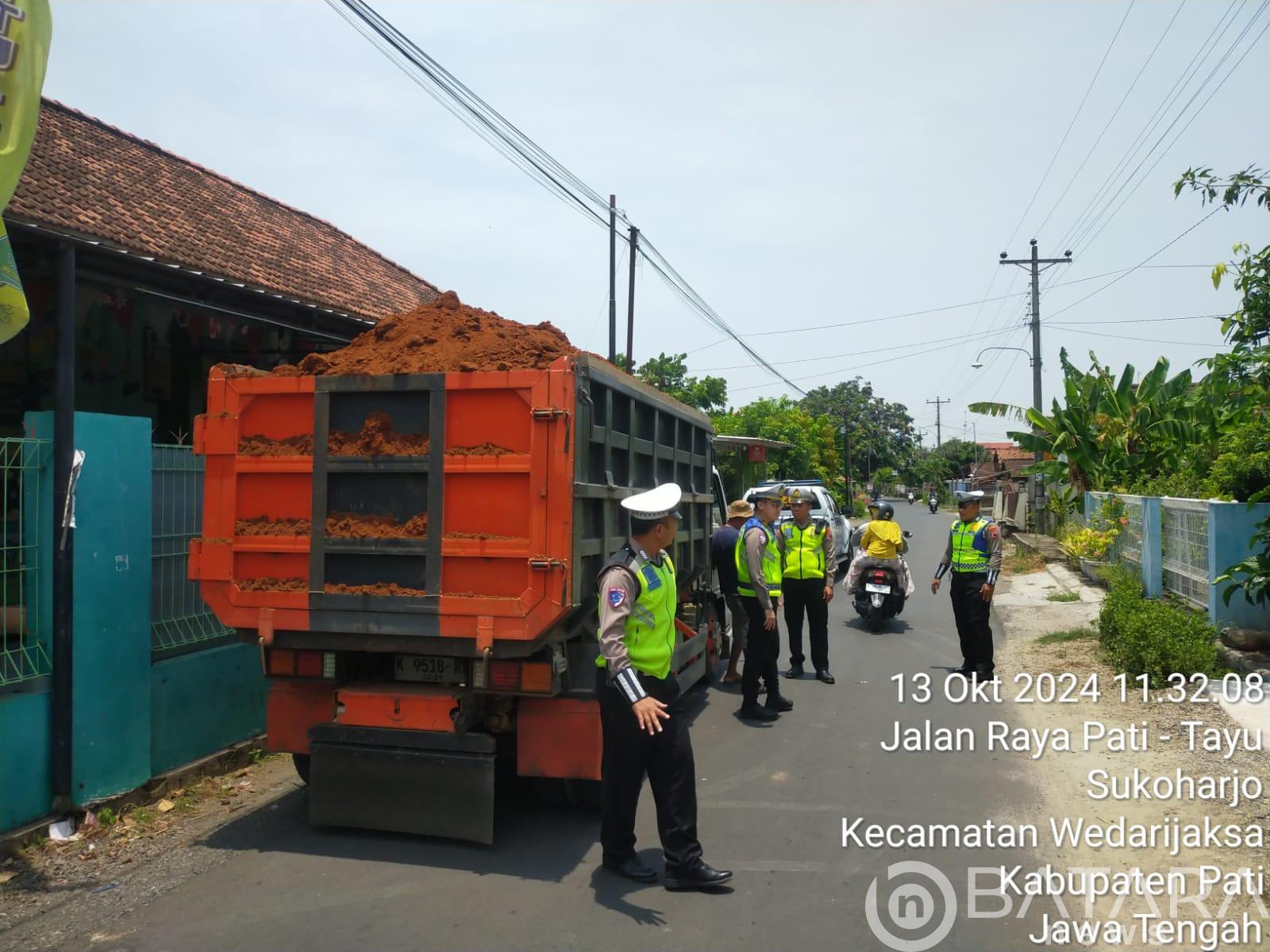 Pati, Batara.news || Puluhan dump truck di beberapa ruas jalan Pati Utara, yakni Wilayah Kecamatan Wedarijaksa, Trangkil, Margoyoso, Tayu dan sekitarnya, dilakukan penindakan oleh Petugas Satlantas Polresta Pati, Minggu (13/10/2024).