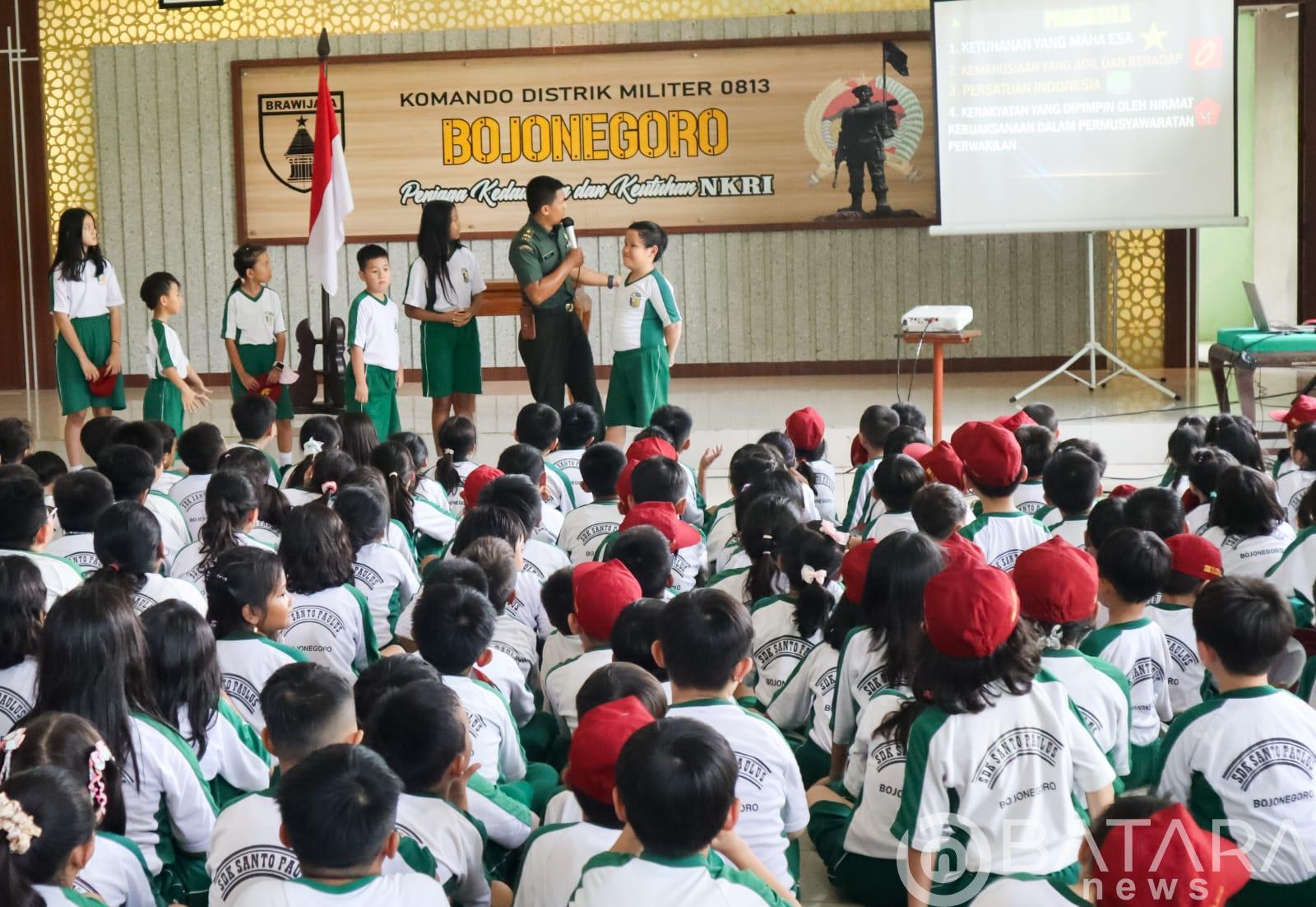 Dalam kunjungan itu, sebanyak 240 pelajar SD Katolik Santo Paulus Bojonegoro mulai dari kelas 1 sampai kelas 6 ini menerima pembekalan tentang wawasan kebangsaan, bela negara, anti kekerasan (bullying) dan pendidikan seksualitas dari para prajurit Kodim 0813 Bojonegoro.