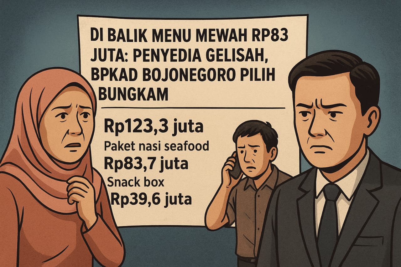 Kontroversi belanja konsumsi rapat Badan Pengelolaan Keuangan dan Aset Daerah (BPKAD) Kabupaten Bojonegoro tahun anggaran 2025 semakin melebar. Dari dokumen yang dimiliki media ini, tercatat anggaran sebesar Rp123,3 juta untuk kebutuhan makan dan minum. Rinciannya, Rp83,7 juta untuk paket nasi seafood dan Rp39,6 juta untuk snack box. Kamis (26/09/2025).