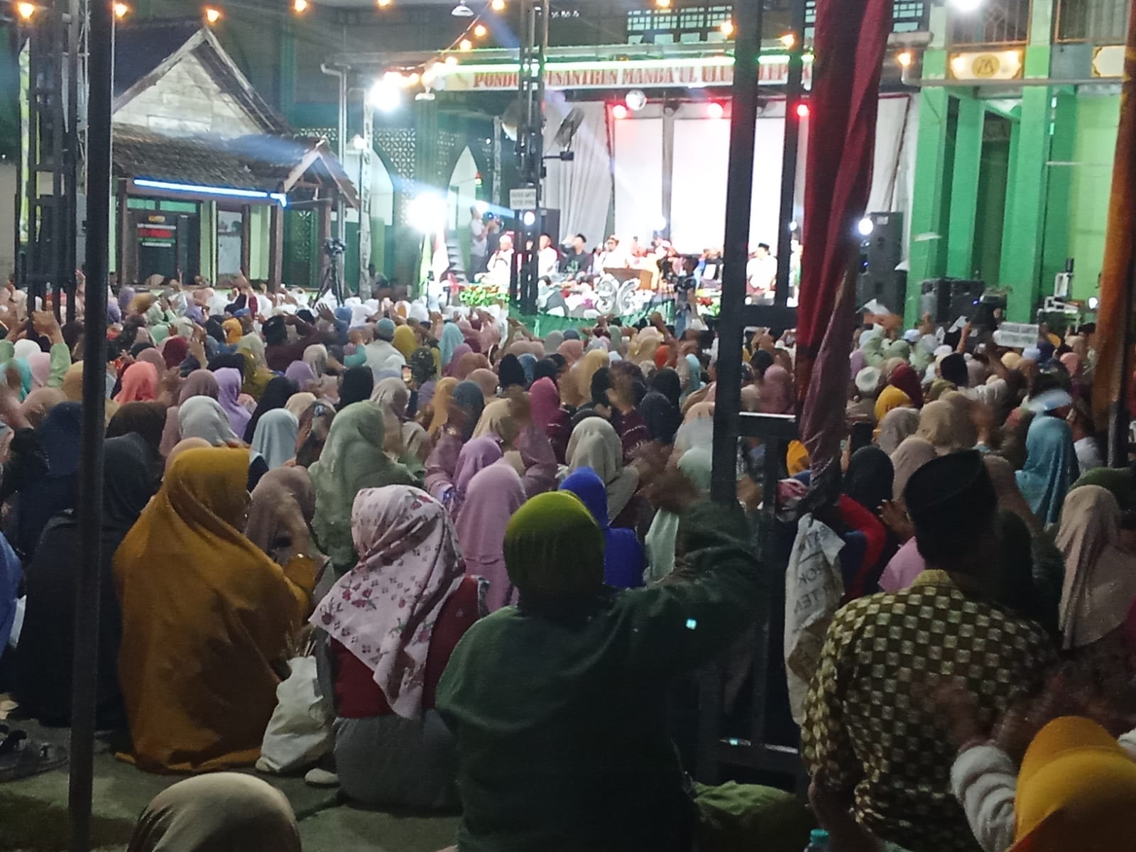 Puncak peringatan Milad ke-36 Pondok Pesantren Mamba’ul Ulum Desa Klepek, Kecamatan Sukosewu, berlangsung khidmat sekaligus meriah. Sejak sore hari, ribuan mustami’in tumpah ruah memadati halaman pesantren. Dengan duduk rapi bak jerami yang tersusun teratur, jamaah larut menyimak tausiyah, pengajian, dan lantunan sholawat yang menggema penuh kehangatan.
