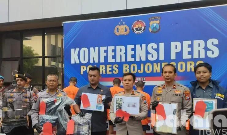 sebuah kota yang biasanya tenang di tepian Bengawan, mendadak berdenyut lebih keras pada Selasa, 11 November 2025. Di halaman Mapolres, di bawah terik matahari yang jatuh lurus ke tanah, Kapolres Bojonegoro AKBP Alfian Satya Permadi berdiri di hadapan awak media. Di belakangnya, deretan barang bukti—sepeda motor, sangkar burung, perhiasan emas, hingga kartu ATM—berjejer seperti potongan puzzle dari sebuah cerita panjang tentang kejahatan.