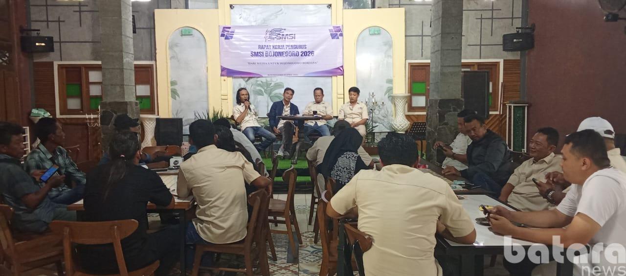 Rapat kerja Serikat Media Siber Indonesia (SMSI) Bojonegoro, Sabtu (11/4/2026), berlangsung cair namun tetap berbobot. Di forum inilah estafet kepemimpinan resmi berpindah.