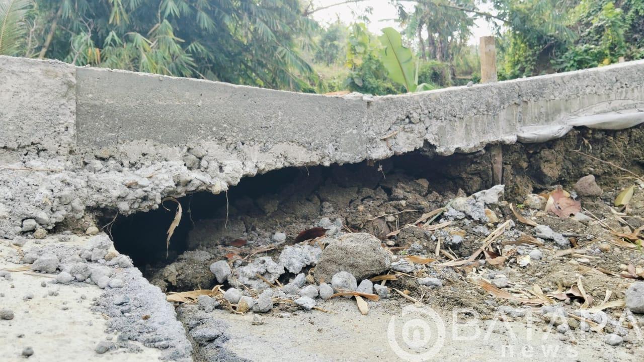Pantauan di lapangan, pada bagian bawah cor beton tampak rongga atau lubang cukup besar, yang mengindikasikan kemungkinan kurangnya pemadatan tanah sebelum pengecoran. Kondisi ini menimbulkan kekhawatiran akan daya tahan konstruksi dan umur pakainya.