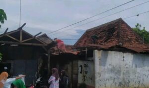 Atap rumah warga rusak akibat terjangan angin puting beliung. Di RT RW 01 ada empat rumah dan satu gudang, sedangkan